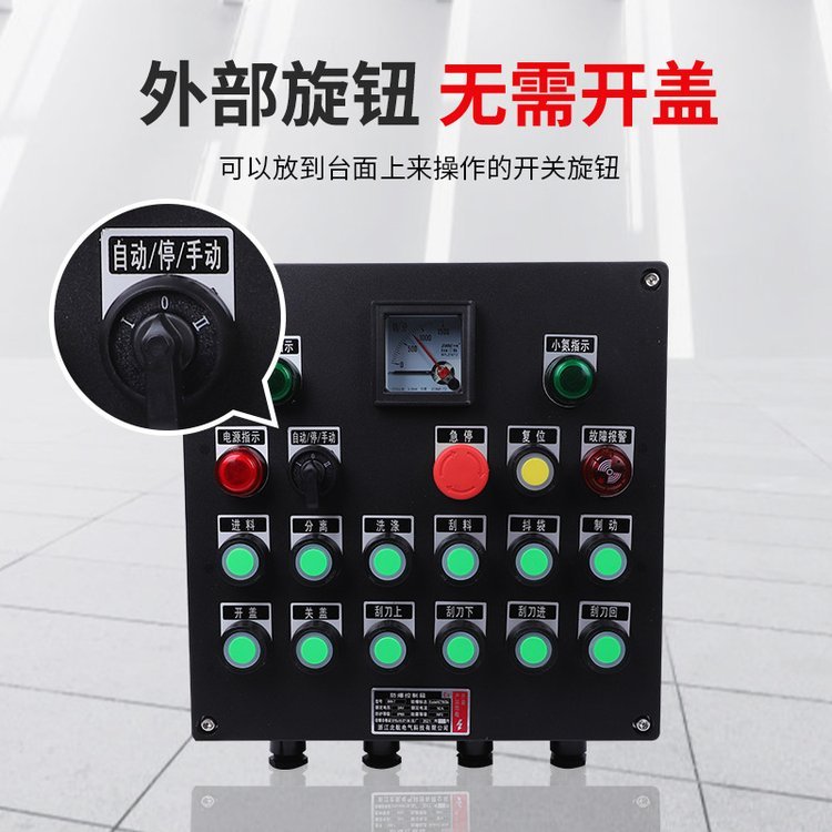 2. 本产品为改进型防爆产品,内部可装防爆按钮、防爆指示灯、防爆电流表、防爆开关、防爆电压表等各种仪表和控制需要的部分;